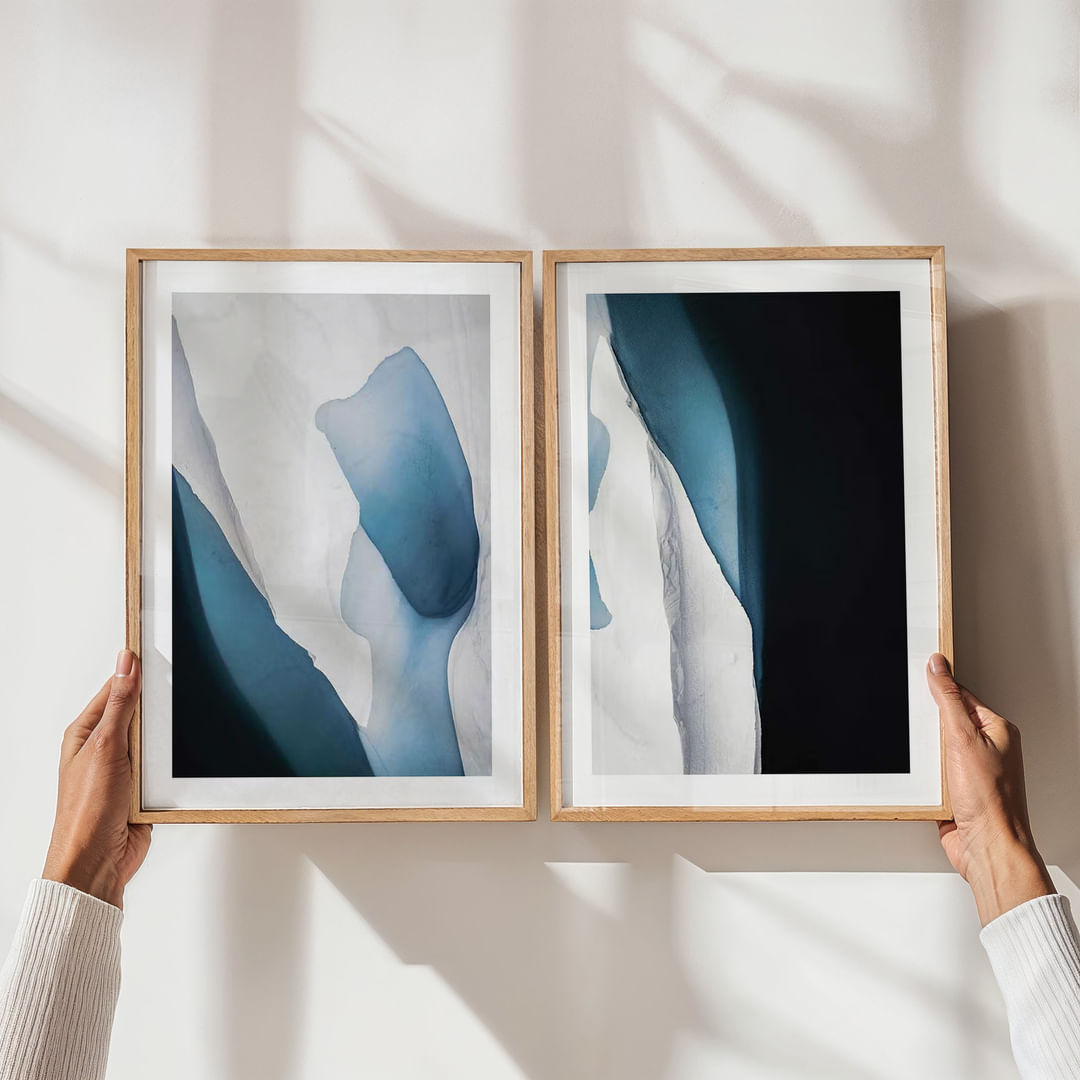 Te plakaty przyciągają wzrok głębokimi, chłodnymi odcieniami błękitu, inspirowanymi lodem i wodą. Delikatne przejścia między kolorami nadają im poczucie spokoju i ponadczasowej elegancji, idealnie nadając się do stworzenia relaksującej atmosfery w każdym pomieszczeniu. Plakaty te staną się eleganckim elementem centralnym, zachęcając do medytacji i wyciszenia, przekształcając Twój dom w oazę harmonii i piękna.