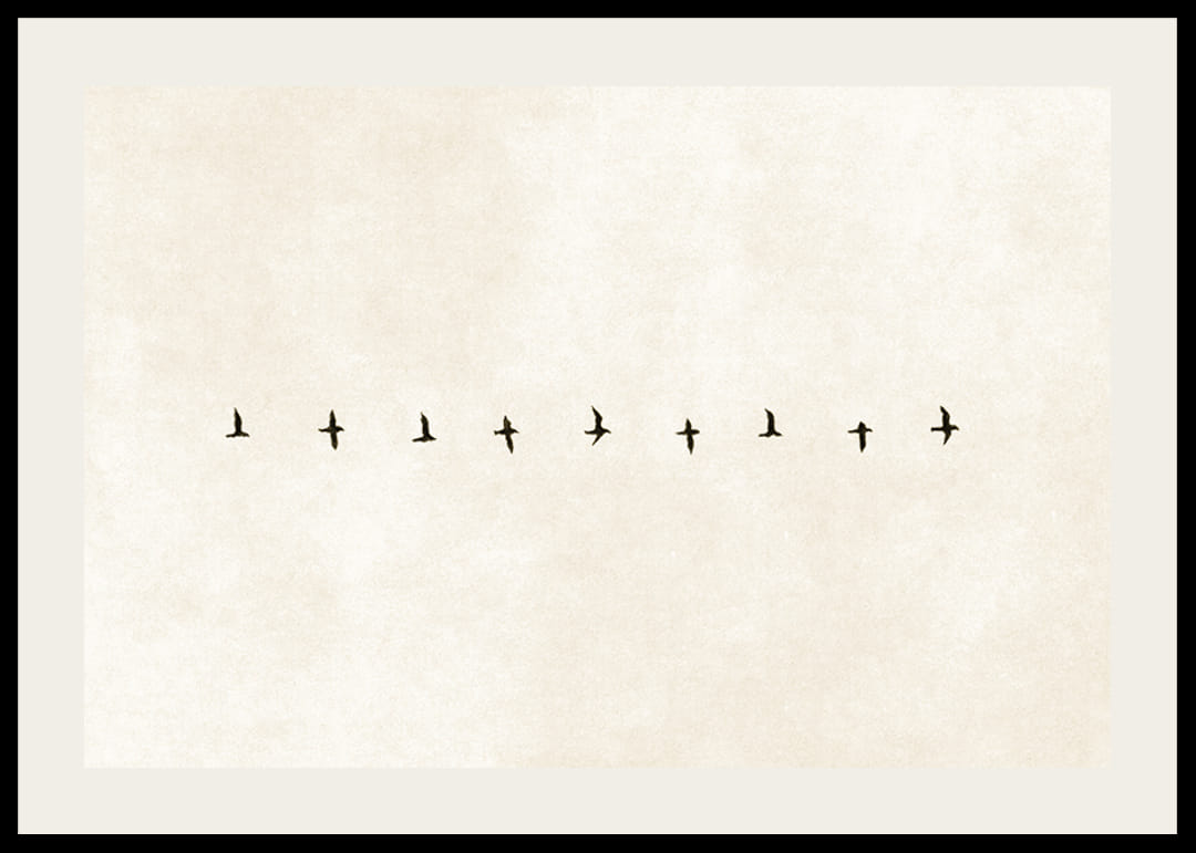 Stwórz w swoim domu poczucie spokoju i wolności dzięki temu minimalistycznemu plakatowi. Zdjęcie przedstawia prostą formację ptaków lecących po niebie, symbol harmonii i wspólnoty. Czysta kompozycja i delikatne odcienie dają efekt uspokajający, który idealnie sprawdzi się w każdym pomieszczeniu, w którym chcesz stworzyć relaksującą atmosferę. Przypomnienie piękna natury i podróży wolnego ducha.