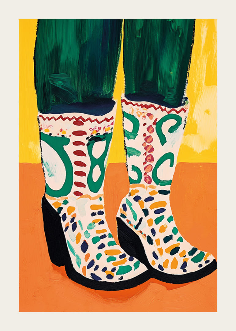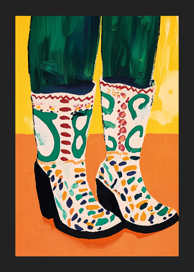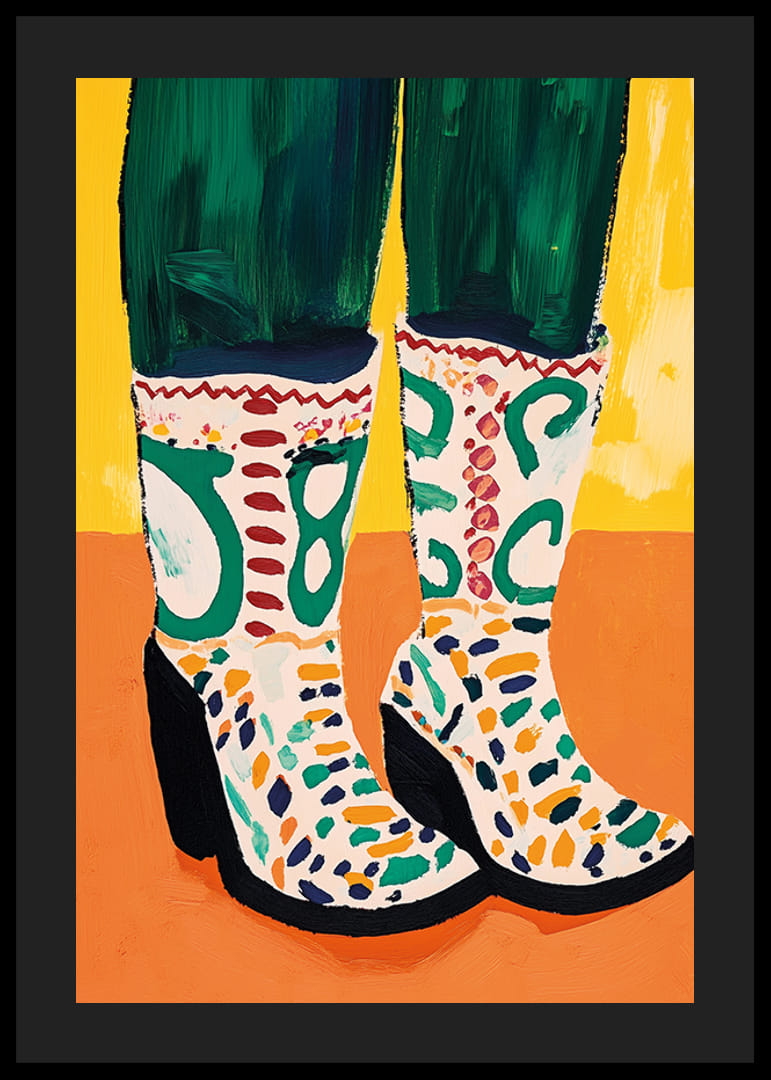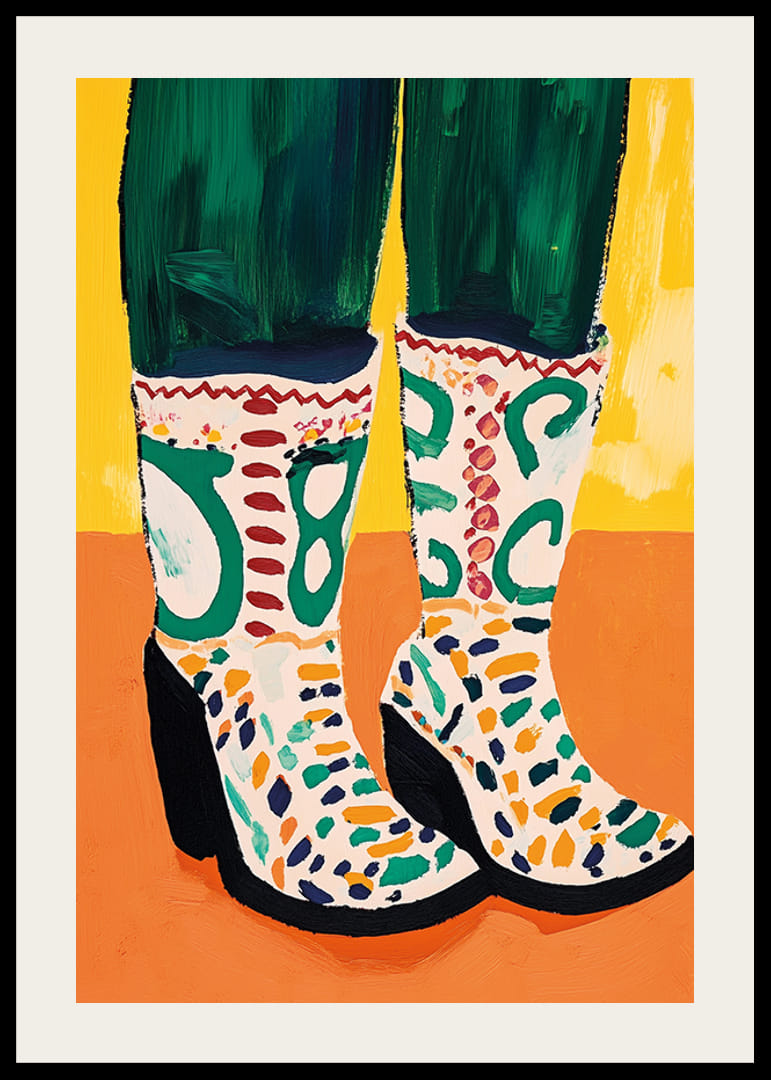 Przekonaj się, jaką radość niosą te żywe buty! Plakat ten uchwycił istotę koloru i kreatywności za pomocą odważnych pociągnięć pędzla i wesołej kompozycji. Odcienie zieleni i bieli, podkreślone wzorzystymi detalami, tworzą energetyczną atmosferę, która nada Twojemu pokojowi stylowego i artystycznego charakteru.